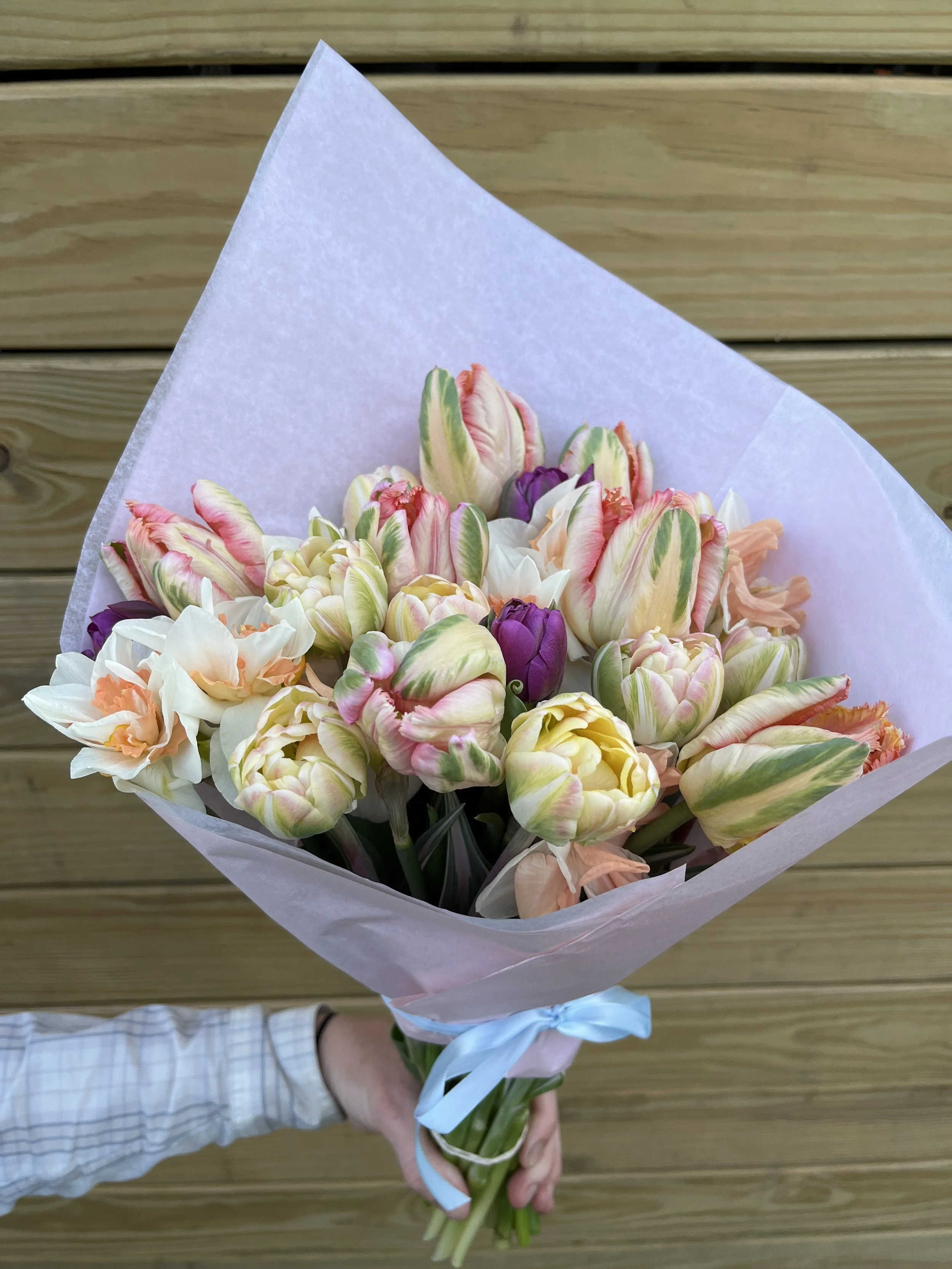 Locally made vase filled with a Spring Bouquet
